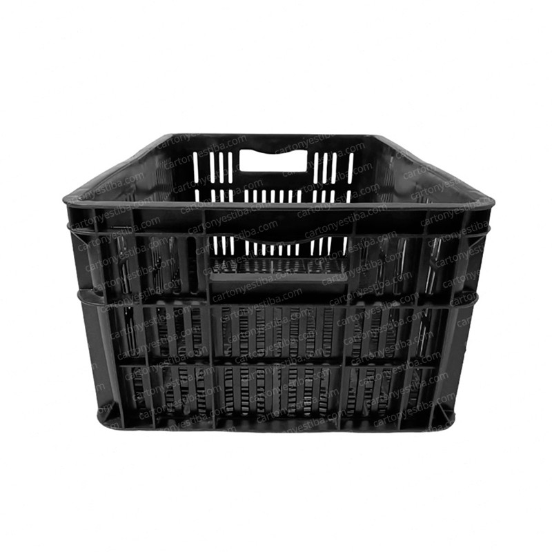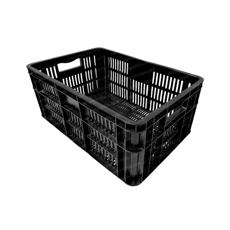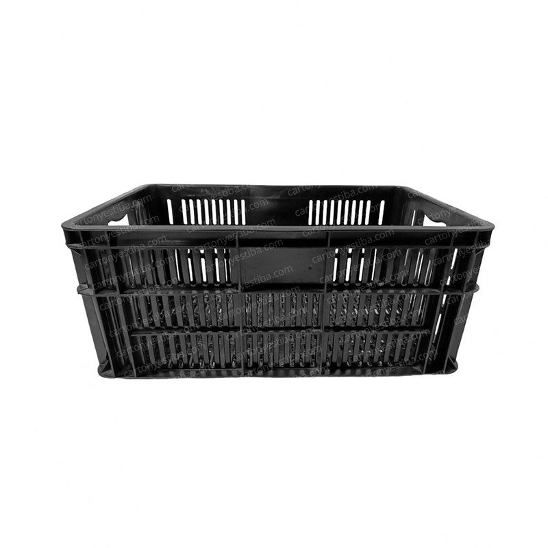 Canastilla Fruver perforada en barras, fabricada en polietileno de alta densidad. Ideal para el transportamiento y almacenamiento de frutas, verduras y otros productos.