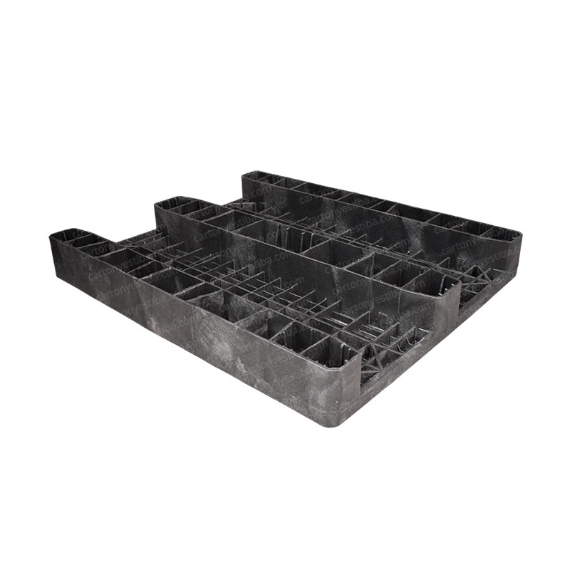 Estiba fabricada con HDPE (Polietileno de alta densidad) reciclados y originales, aditivos anti-UV, aditivos para alto impacto y resistencia a baja temperaturas y colorantes aprobados por la FDA.