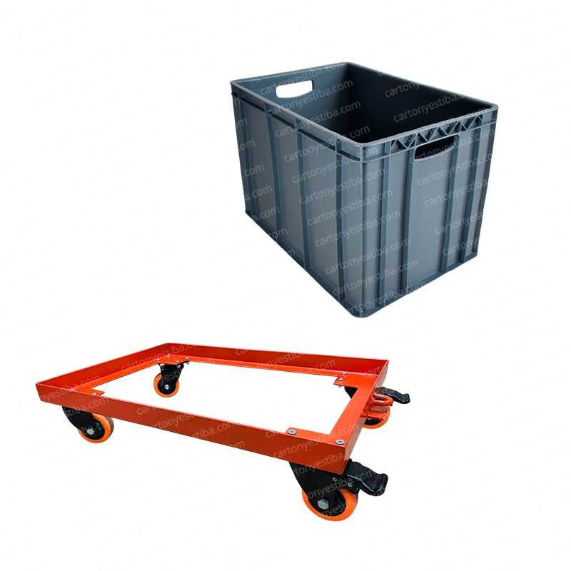 Base carro porta canastilla sin gancho + dos canastillas plásticas de 60x40x41 cm